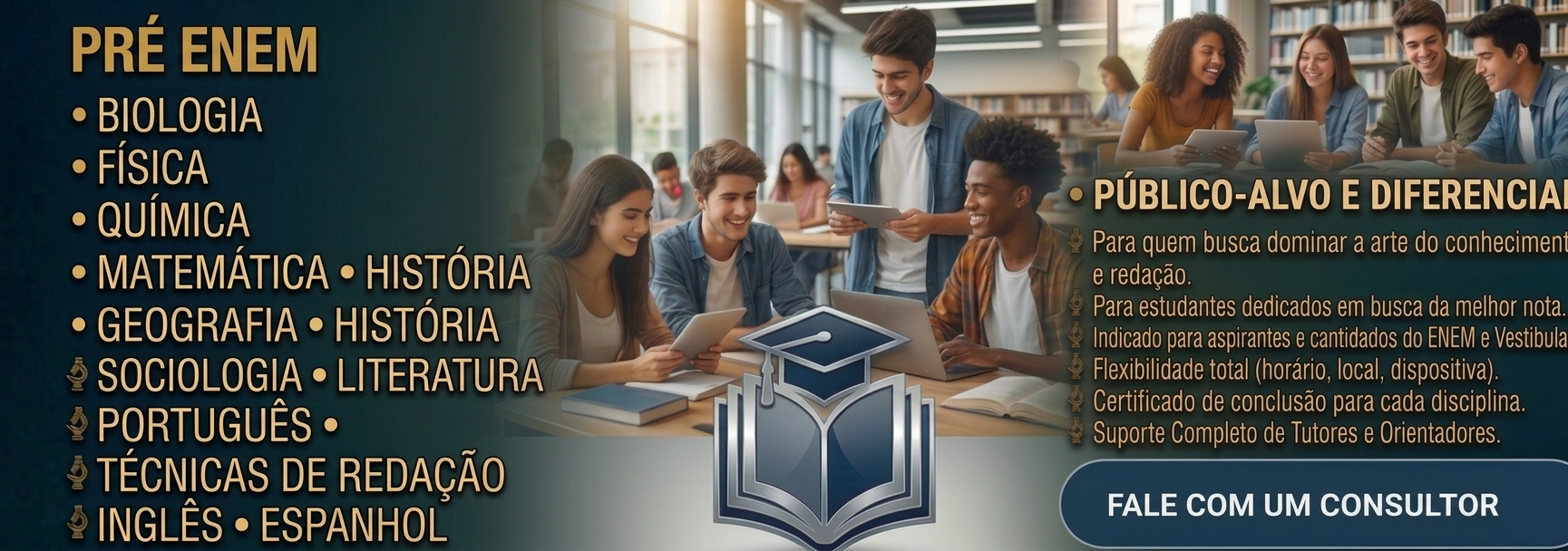 Sabemos que a jornada até o Ensino Superior é um desafio. Por isso, o Pré-Enem Eduninter foi desenhado para quem precisa de foco, qualidade e, acima de tudo, resultados. Aqui, você não apenas estuda: você se prepara estrategicamente para as provas mais importantes do Brasil.
