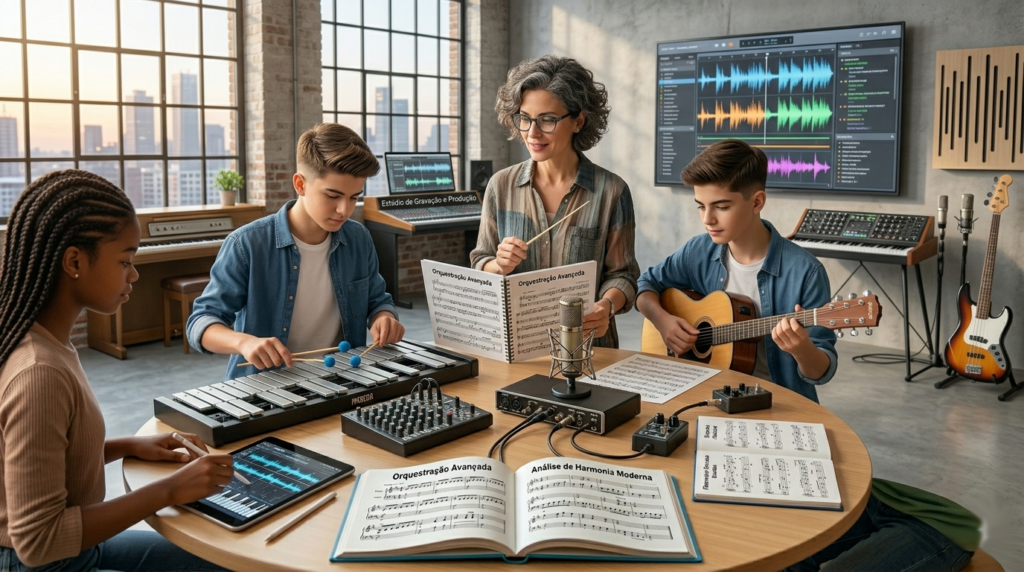 Escolas de Música e Conservatórios: Instrutor de instrumentos, teoria musical e canto;
